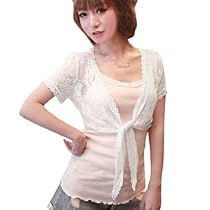 Allegra K Ladies Front Opening Short Sleeve Asymmetrical Hemline Lace Shrug White S Description :
